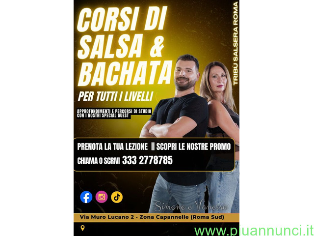 corso Corsi di SALSA & BACHATA SALSA & BACHATA a ROMA SUD! Hai voglia di ballare, conoscere nuove persone e liberare tutta la tua energia? Alla Heart4Dance Studio con la Tribù Salsera Roma ti aspetta un mix esplosivo di ritmo, passione e divertimento! Corsi per tutti i livelli ? dai primi passi agli stili più evoluti Special Guest e percorsi di approfondimento unici Un?atmosfera travolgente, come solo la nostra tribù sa creare! Via Muro Lucano 2 ? Zona Capannelle (Roma Sud) Prenota la tua prova o chiedi info: [NUM] Seguici su [at]heart4dancestudio e unisciti alla community più caliente di Roma! Roma (RM)
