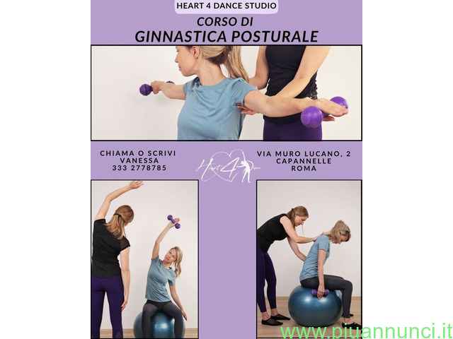 corso Corso di Ginnastica Posturale GINNASTICA POSTURALE ? Heart 4 Dance Studio Ritrova equilibrio, mobilità e benessere con un allenamento dolce ma profondo, adatto a tutte le età La ginnastica posturale è un percorso mirato per migliorare la postura, sciogliere le tensioni muscolari e prevenire dolori a schiena, cervicale e articolazioni. Ogni lezione combina esercizi di allungamento, respirazione e consapevolezza corporea per ristabilire armonia tra corpo e mente Ideale per chi vuole: Ridurre dolori muscolari e articolari Migliorare la postura e la flessibilità Riequilibrare il corpo e ritrovare energia Ogni movimento è guidato con attenzione e personalizzato sulle esigenze di ciascun partecipante ?? Heart 4 Dance Studio ? Via Muro Lucano 2, Roma Capannelle Info e iscrizioni: Vanessa [NUM] Iscrizioni aperte! Prenota la tua lezione di prova gratuita e riscopri il piacere di muoverti senza dolore. Roma (RM)