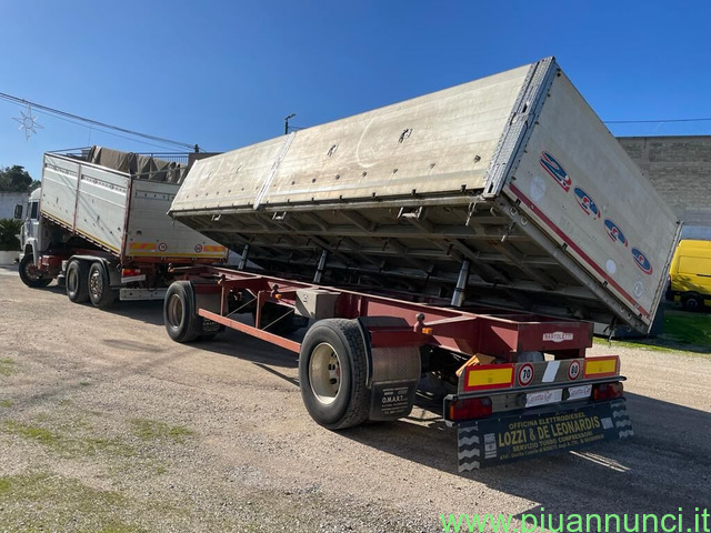 Camion ribaltabile Iveco TURBOSTAR 190.42 RIB.TRIL alimentazione diesel prezzo EUR.100,00 immatricolata 1987 804000Km X INFO: DOMENICO [NUM] GRAZIE RIF. 1538 IVECO TURBOSTAR 190. 42 RIB. TRILATERALE CON SPONDE E SOPRASPONDE +SPIOVENTE E TELO. ANNO 1987 KM 804000 PORTATA Q. LI 125 PASSO 4000 CAMBIO FULLER ECO SPLITTER GOMMATO NUOVO 80% MISURE: LUNGHEZZA MT. 6. 15, LARGHEZZA MT. 2. 50 SPONDE ALTEZZA MT. 1 +SOPRASPONDE CM 0. 60 CON APERTURA A BANDIERA RIF. 1537 RIMORCHIO BARTOLETTI RIB. BILATERALE CON PIANALE IN ALLUMINIO ANNO 1999 PORTATA Q. LI 175 GOMMATO 50% CERCHI IN LEGA PNEUMATICO MISURE: LUNGHEZZA 8. 20, LARGHEZZA MT. 2. 55, ALTEZZA MT. 1. 15 Camion con rimorchio doppio, marca e modello non specificati. State di conservazione visibile, colore grigio con rimorchi argentati. Adatto per trasporti pesanti. Contatto disponibile per informazioni. Andria (BT)